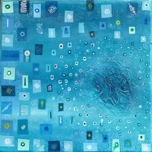 20x20 blue Acrylique, collage, encre