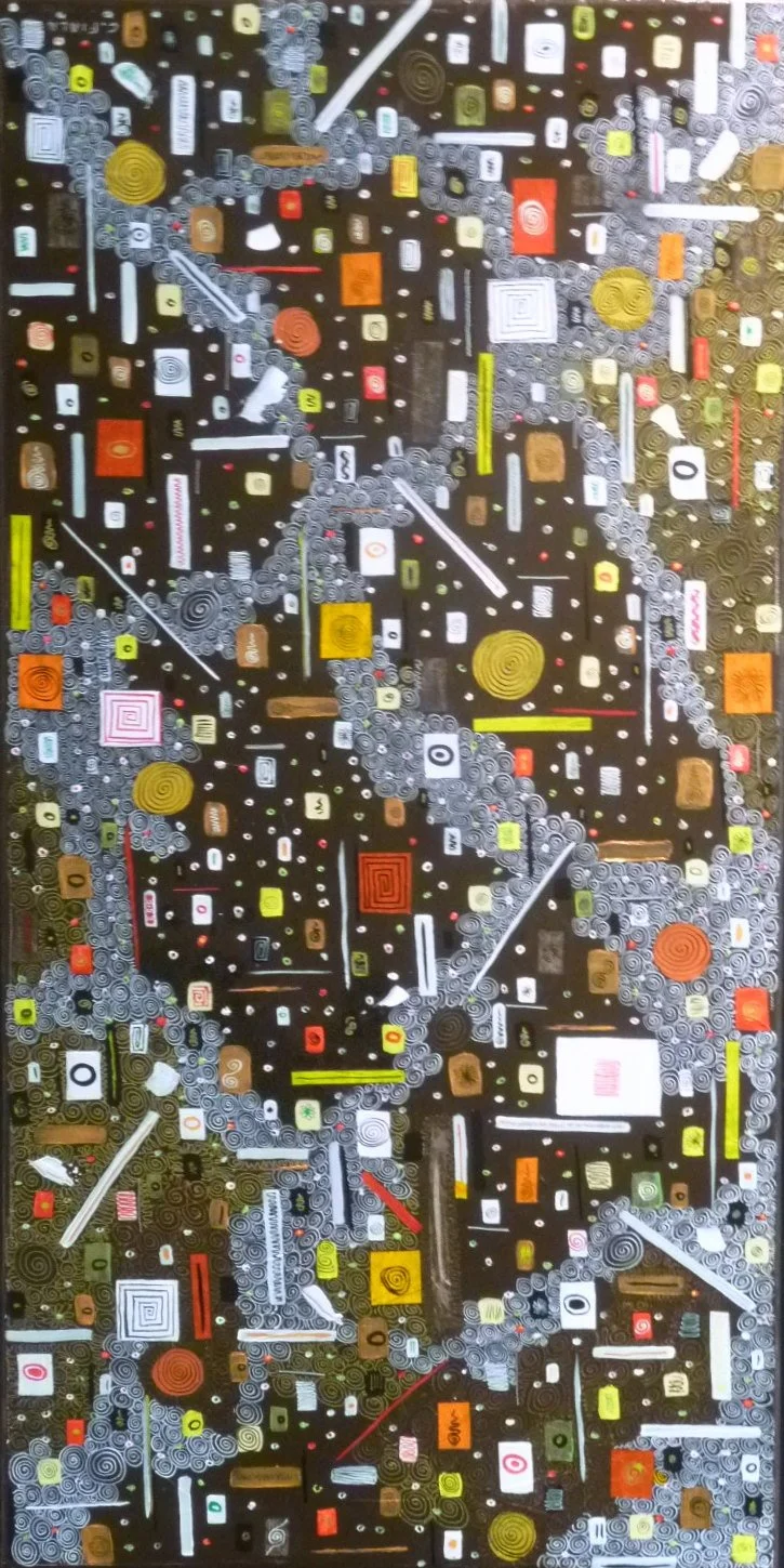 40x80 Reflets Acrylique, encre, collage