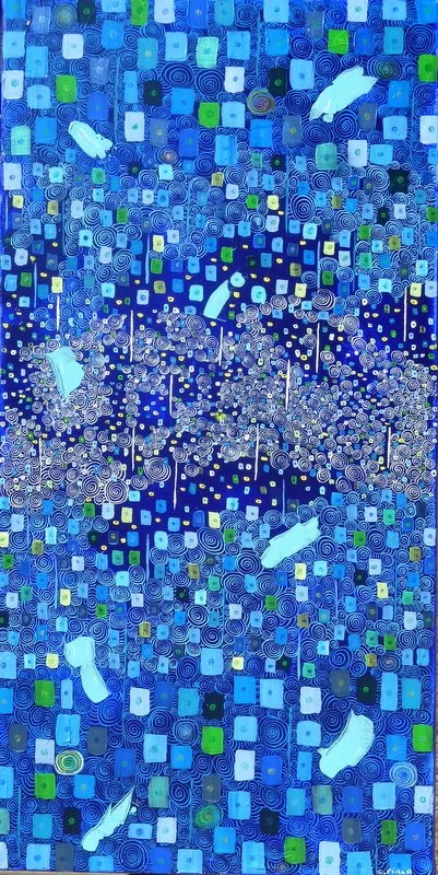 40x80 Bleu nuances Acrylique, encre