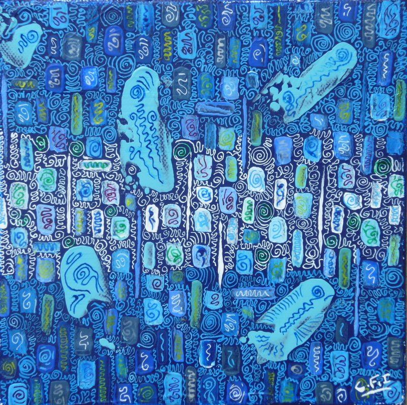 20x20 bleu Acrylique, encre